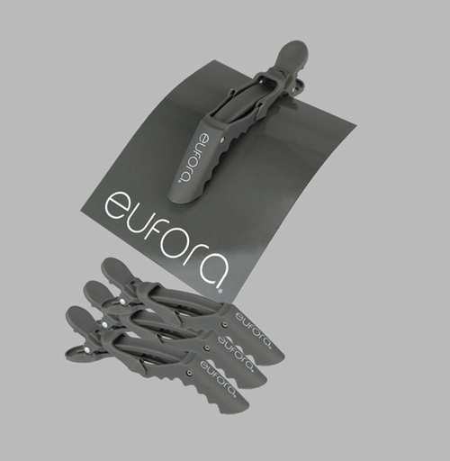 NEW! Eufora sectioning clip with “alligator jaw” design keeps the clip from falling out. The jointed arm and flexible grip prevent lines of demarcation. Essential for every blow dry!